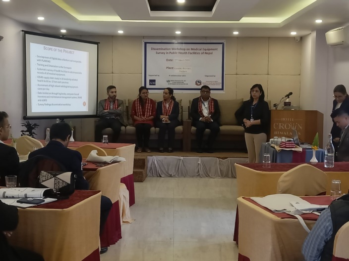 The Second dissemination workshop of medical equipment survey has been conducted successfully at Hotel Crown Himalayas, Pokhara, Gandaki Province on 27th of March 2024, chaired by Dr Rajiv Rijal, Director, PHLMC, Gandaki Province. The chief guest honorable Mr Chandika Poudel, Acting Secretary, Ministry of Social Development and Health, Dr Anu Shakya of Management division, DoHS and Directors and other representatives from surveyed hospitals were present. A detail survey data report of all 14 surveyed Healthcare facilities of 9 districts of Gandaki province along with the recommendation has been presented by the team leader of Lifeline Enterprises Pvt. Ltd.
