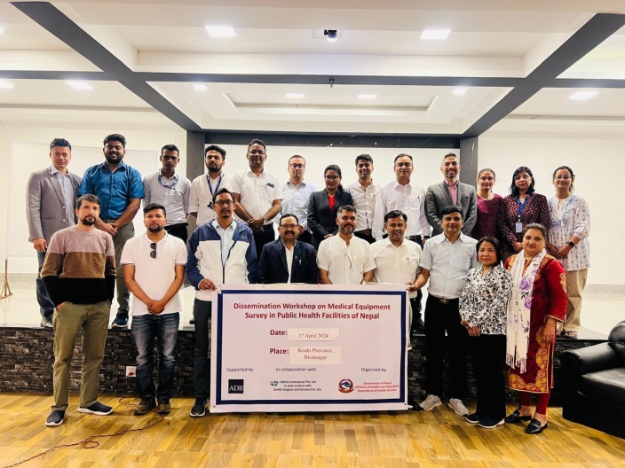 The Third dissemination workshop of medical equipment survey has been conducted successfully at Hotel Asiatique, Biratnagar, Koshi Province on 1st of April 2024, chaired by Dr Birendra Kumar Mandal, Director, Provincial Health Logistic Management Centre, Koshi Province. The chief guest honorable Gyan Bahadur Basnet, Director, Health Directorate, Koshi Province, Dr Anu Shakya, Management Division, DoHS along with Medical Directors and representatives from different surveyed hospitals were present. A detail survey data report of all 18 surveyed Healthcare facilities of 14 districts of Koshi province along with the recommendation has been presented by the team leader of Lifeline Enterprises Pvt. Ltd.